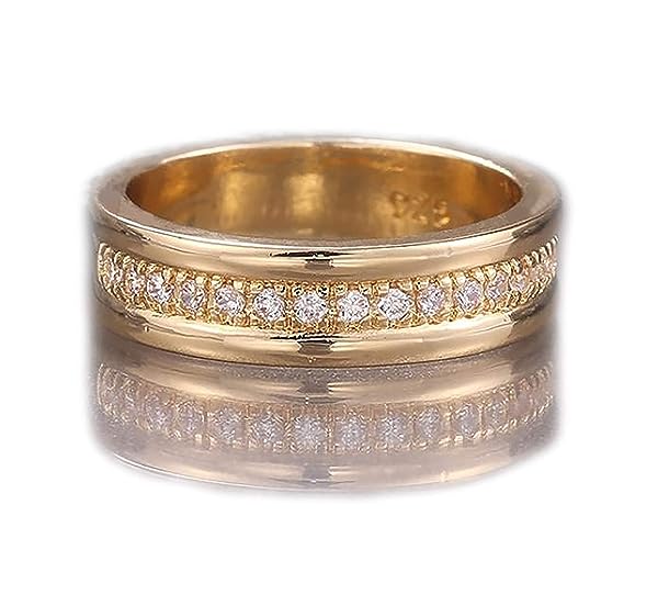 - Clean and Sparkling Look: this ring uses channel setting to set small cubic zirconia stones in the groove within the band. The stones are bordered by two bands. It creates a very clean, bright and sparkling look.
