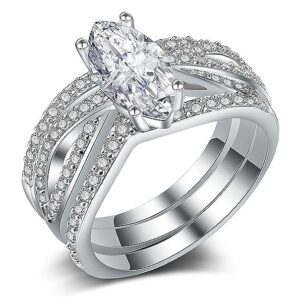 Engagement Promise Wedding Ring Set for Women | White Gold Tone Gold Tone Marquise Cut Solitaire 1.5 Ct AAA Zirconia with Wedding Bands | Luxury Unique Bowtie Shank Design