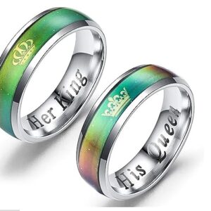 Her King His Queen Emotional Color Changing Couple Rings | Body Temperature and Mood Sensing Rings for Lovers and Couples | Promise Rings Wedding Bands Anniversary Rings for Men and Women