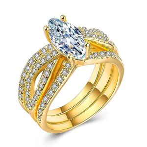 Engagement Promise Wedding Ring Set for Women | White Gold Tone Gold Tone Marquise Cut Solitaire 1.5 Ct AAA Zirconia with Wedding Bands | Luxury Unique Bowtie Shank Design