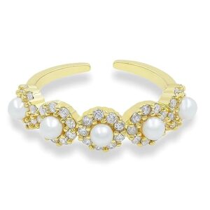 Pearls and Cubic Zirconia Dainty Multistone Adjustable Rings | 18K Gold Plated (Zirconia, Adjustable)